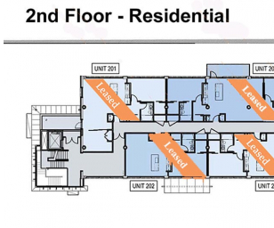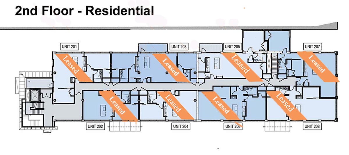 This dramatic transformation created 9,300 square feet of retail and commercial space on the first floor. The second floor has eight loft-style apartments that became available for rent in February 2014.
